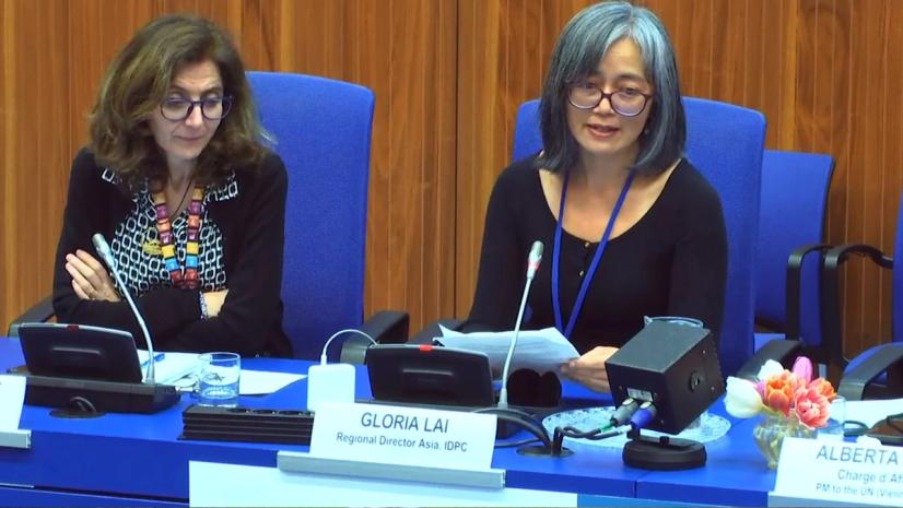 As has now become integral to the CND, civil society was out in force at the high-level meeting – with excellent Plenary interventions delivered by Ahmed Said of the African Network of People who Use Drugs, and Diego Andres Lugo Vivas. NGOs were also able to participate in two “roundtables” that took place – with IDPC’s Gloria Lai taking her place on the panel tasked with “taking stock”, while several colleagues spoke at the event designed to “look forward”.