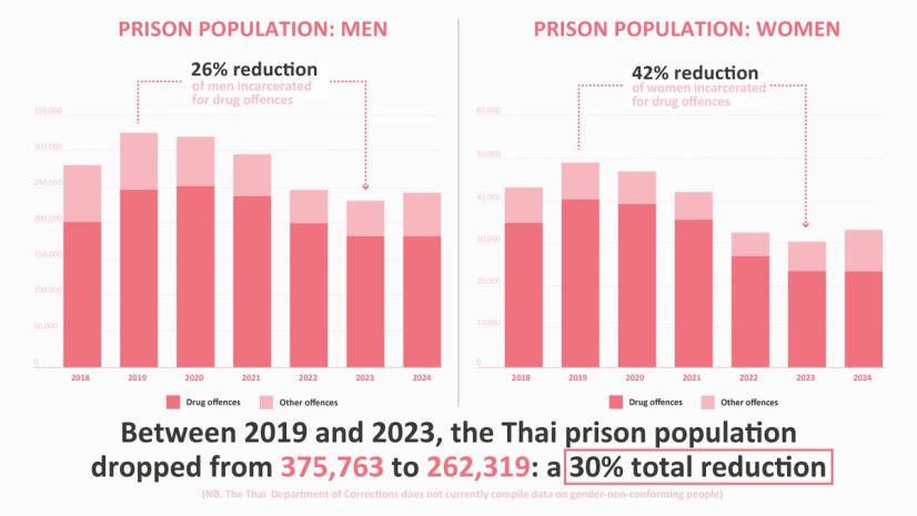 Thailand has amongst the world’s highest rates of incarceration for drug offences (over 70% of people in prison are held for drug offences), especially for women.