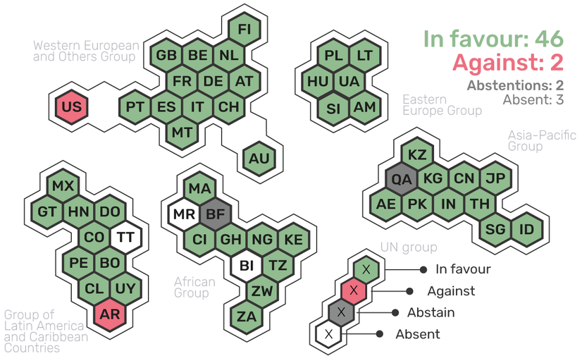For the second consecutive year, every resolution went to a vote on the final day. India called a vote on a Mexico-led resolution. China called a vote on a US resolution. And the US led the charge against the other three resolutions (driven by its domestic reactionary agenda against any mentions of gender, sustainable development, the WHO, etc).